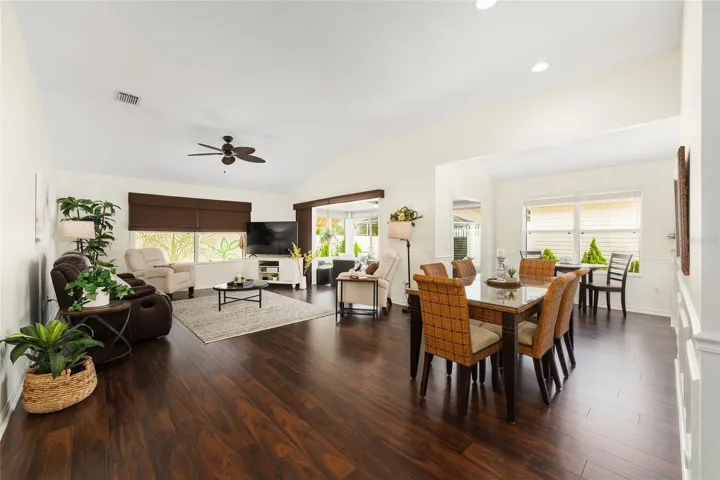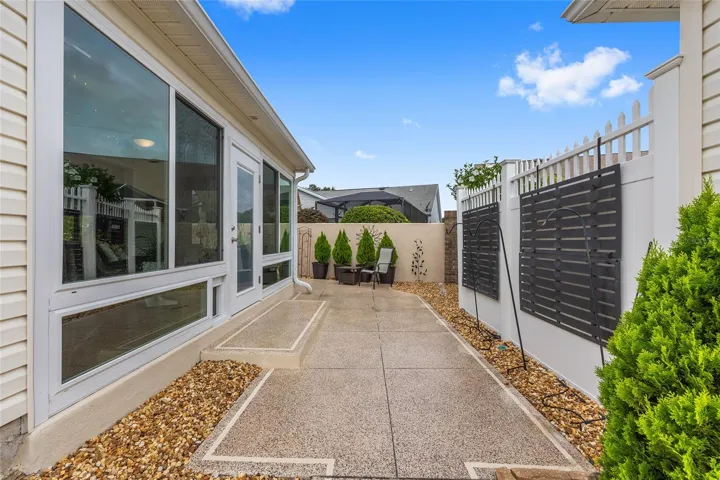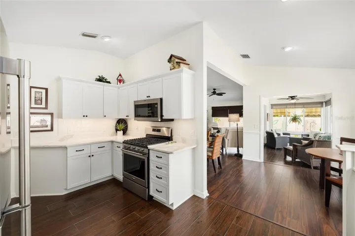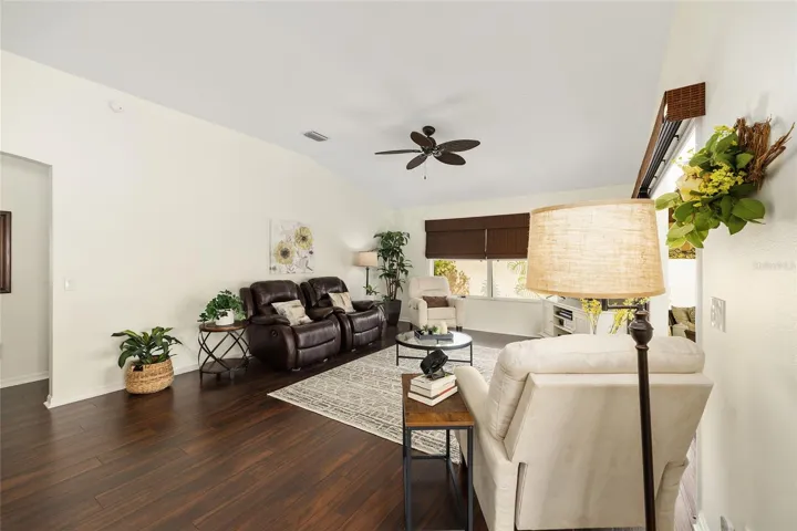 ELEGANT AND BEAUTIFULLY UPDATED ** This AMAZING Anna Maria Courtyard Villa in the Village of Piedmont, Chadwick Villas comes TURNKEY! – BOND IS PAID! — This Gorgeous 3-Bedroom, 2-Bath GAS home offers 1,733 Sq Ft of Living Space with High & Vaulted Ceilings, NO CARPET (Tile & Laminate), NO POPCORN Ceilings, SOLAR TUBES, Custom Pull-Down Shades, Chair Rail & Decorative Picture Frame Wainscoting!! — The Kitchen SHINES with QUARTZ Countertops, Shaker Style Cabinetry with Pull-outs, TILED BACKSPLASH, Cabinet Pantry with Pull-outs, and Maytag STAINLESS STEEL Appliances. — The SPACIOUS Living and Dining Areas open to a light filled Florida Room with Tile Plank Flooring and Sliding Windows, which lead to a private COURTYARD and Rear Patio featuring LOW MAINTENANCE Landscaping with Rock Mulch, (No Grass) and a CUSTOM PAINTED MURAL!! – The PRIMARY SUITE offers a 15 Ft x 12.5 Ft Bedroom with Ceiling Fan, Dual Windows to Courtyard. The En-suite Bathroom with Pocket Door Entry features DUAL SINKS, a Step-in Tiled Shower (Floor & Walls to Ceiling) with Tiled Bench Seat & Glass Entry Door, Walk-in Closet, 2 SOLAR TUBES & Private Privy. – There are 2 Guest Bedrooms, both with Built-in Closets! — The Guest Bathroom has a QUARTZ Topped Vanity, Step-in Shower with Tiled Walls to Ceiling, Corner Bench Seat and Glass Door Entry. – Major Updates include a 2020 ROOF, 2017 HVAC, and 2022 Gas Water Heater!! — The Garage is 1-Car Plus Golf Cart Parking, Laundry is in Garage (Washer & Gas Dryer), Utility Sink, Keyless Garage Entry, Wall Mounted Cabinets & Wire Shelving! – Please watch the professional video tour for this GORGEOUS home! Don’t miss out on this GEM in The Villages, FL!!! (Buyer is responsible for verifying all information and measurements.)