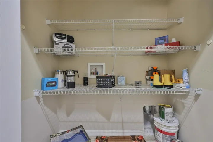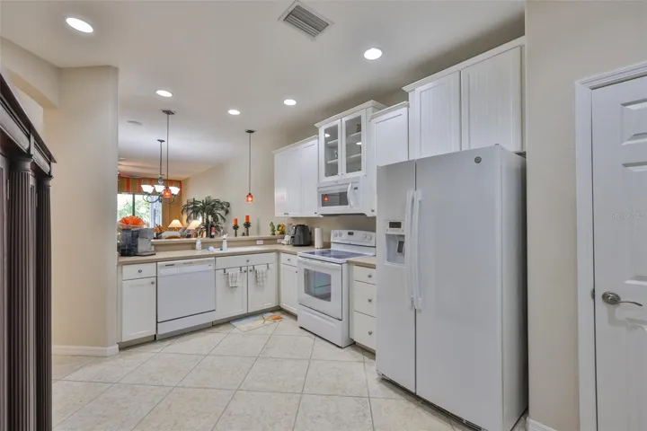 Welcome to your Oasis in the Paradise of SouthShore Falls… the Premiere 55+ Community on the West Coast of Florida! This Meticulously maintained home has it ALL with NEW A/C unit(2024), Freshly painted interior(2025), a 2 year Choice Home Warranty, Huge extended Lanai surrounded by Palm Trees and ALL windows have carefree Roll Shield Accordion Storm Shutters and a remote control Roll down Shutter on the lanai! As you step through the screened porch and enter through the front door of this stunning 2b, 2b, PLUS Flex room(optional 3rd bdrm), you will see all the beautiful upgrades: Beautiful inlaid tile entry and diagonally set tile giving the home a rich feeling throughout, arched doorways and rounded wall corners, and BONUS… All 4 TV’S ARE INCLUDED! The gourmet kitchen features bright white cabinetry, white appliances, large pantry and breakfast bar with beautiful pendant lighting above. There is a kitchen nook PLUS a dining room area that leads to the spacious Great Room overlooking the huge extended lanai and plush greenery! The Primary Suite is very spacious with a huge Walk-in Closet and En-Suite bathroom with Dual Sinks and Step-in Shower. The 2nd bedroom is very spacious near the guest bath, with tub and shower just steps away and the split floor plan affords your guests privacy. The Flex room makes a great office or 3rd bedroom! There is an inside laundry closet with washer dryer hookups, but this seller preferred setting up laundry in the spacious 2 car garage, however you can move the washer and dryer back inside home if you prefer! (Seller liked having the closet to use for storage and an additional pantry. The extended lanai is the ultimate dream of all patios, completely tiled, remote controlled roll down storm shutter and surrounded by palm trees and foliage. This home is located near the beautiful paved walking trail that meanders through the lush woods that take you to the rear pool and pickleball courts! Other features include: Ceiling Fans throughout, 2 car Garage with auto opener, utility sink & Storage cabinets, Pest Service monthly by Home Team, 2 year Choice home warranty included/transferrable and the list goes on! This is a must see above and beyond all the rest! Enjoy Resort-style living in this 24-hour Gated Community…Florida’s Best Kept Secret Beyond Compare… Very low HOAs (NO CDDs) Pets Welcome! Spectacular recreation area in a Vacation-Style setting with Lagoon Heated pool, Resistance Pool, Spa, state-of-the-art Fitness Center, Water Aerobics, Bike Club, Walking Trails, Golf putting greens, Bocce & Pickle Ball & Tennis courts, Arts and Crafts, Billiards, Library, Card Clubs, Internet café and so many daily activities and Entertainment in the Expansive Clubhouse! Very close to World Renowned Sugar Sand beaches in any direction, Golf Courses, a public boat launch, Freedom Boat Club, Tampa Bay City Life, International Airports and Hospitals. So, Come on, get away from it all at Del Webb SouthShore Falls Paradise and Live, Laugh, and Love Life!