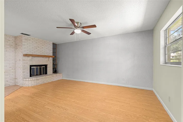 NEW PRICE BY MOTIVATED SELLERS! VERY Popular Montgomery Model Villa with 2 Bedrooms, 2 Baths, 2-Car Garage, and a FIREPLACE! Roof 2015, HVAC 2024, water heater 2017 & NEWER WASHER/DRYER! Notice the large, inviting front porch as you approach this move-in ready villa, perfect for enjoying your morning coffee and greeting your neighbors! The driveway has sufficient space for 2+ cars, plus the 2-car garage. Step into the foyer that buffers a direct entrance/view into the living room/dining room space. Notice the neutral laminate flooring throughout, tile in “wet” areas, and updated lighting! NO CARPET! Both bedrooms are on the right side of the home, with the guest room in front with a large/deep closet, and the hall/guest bath dividing the bedrooms. Hall bath is updated with tub and tile surround, with glass doors, and comfort height toilet. The primary bedroom is in the back right of the home for privacy. The primary bedroom includes a walk-in closet and en suite bath with step-in tiled shower with grab bars, updated vanity, and comfort height toilet. The kitchen has been nicely updated with new countertops, custom tile backsplash, brand new appliances, deep sink, and more! The family room includes a fireplace with a blower for those chilly central Florida nights! The family room is light and bright, with entrance to the garage where the laundry hookups and laundry tub are located. The finished Florida room is off the family room with lots of windows for natural light, under heat/AC! A paver patio in back is perfect for grill space, with Green space providing privacy! AND THE WHOLE HOUSE INTERCOM STILL WORKS! The monthly HOA fee includes Basic Spectrum Cable, irrigation water, roof repair, exterior painting every seven years, exterior maintenance and insurance, landscaping, trash & recycling, 24/7 monitored gates and what seems like endless amenities; three pools (2 outside & 1 inside & another under construction), two state of the art fitness centers, pickleball (uncovered & covered), billiards, archery range, corn hole, bocce ball, tennis, shuffleboard, horse shoes, remote control flying field and race cars, 175+ clubs, woodworking shop (extra fee), library, and much, much more! A golf cart community with access to several shopping centers. Centrally located 20 minutes from the World Equestrian Center, easy drive to 4 cruise ports and/or airports, and within a close proximity to entertainment complexes in Orlando.