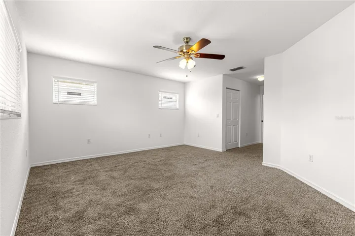 UNBELIEVABLE PRICE FOR SPACIOUS GOLF COURSE HOME!!! Located directly on the 2nd Tee of “The Links” private golf course, this spacious Oakridge Model Duplex (1/2) located in the premiere 55+ gated golf community of On Top of the World in SW Ocala. Notice the Green Space in front of the home of this North-East facing home as you approach. Architectural shingle 30-year roof installed 2021, double pane windows, and natural gas appliances (range, dryer, water heater, furnace). Beautiful view from the large front porch – perfect spot to enjoy your morning coffee, or evening beverage! Step inside and immediately notice the HARDWOOD FLOORS and vaulted ceilings! Freshly painted throughout! To the right is the Flex/Den. Moving through Great Room to the Open Concept kitchen/family room (currently used as dining room). The large kitchen with prep island and family room are perfect for entertaining, adjacent to the finished Florida room and small patio for grilling – AND CHECK OUT THOSE GOLF COURSE VIEWS! Also included in the kitchen is a large pantry, smart lighting, brand new disposal, and solar tube for more natural light! The primary bedroom suite is in the back right of the home for privacy and MORE INCREDIBLE VIEWS. This bedroom has 2 WALK-IN closets, BRAND NEW UPGRADED 2-month old wall-to-wall carpet, and large en suite bath. The en suite has two separate vanities, step-in shower, and private water closet with comfort height toilet. The laundry closet is in the hall off the kitchen. The guest bedroom is in the back left of the home, also with brand new upgraded wall-to-wall carpet, and double closet. The hall/guest bath has tub w/tile surround. Entrance to the 2-car garage past the guest room with overhead storage and exhaust fan. All new window blinds throughout. The monthly HOA fee includes Basic Spectrum Cable, roof repair, exterior painting every seven years, exterior maintenance and insurance, landscaping, trash & recycling, 24/7 monitored gates and what seems like endless amenities; three pools (2 outside & 1 inside & another under construction), two state of the art fitness centers, pickleball (uncovered & covered), billiards, archery range, corn hole, bocce ball, tennis, shuffleboard, horse shoes, remote control flying field and race cars, 175+ clubs, woodworking shop (extra fee), library, and much, much more! A golf cart community with access to several shopping centers. Centrally located 20 minutes from the World Equestrian Center, easy drive to 4 cruise ports and/or airports, and within a close proximity to entertainment complexes in Orlando.
