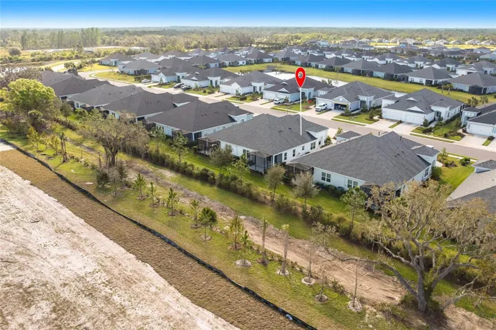 One or more photo(s) has been virtually staged. This extraordinary villa is a masterpiece, adorned with over $58,000 in luxurious builder upgrades, transforming every corner into a sanctuary of elegance. Step onto the exquisite wood grain tile flooring that flows through the main living areas, leading to an extended kitchen island topped with opulent custom quartz. The kitchen gleams with a stunning tile backsplash, state-of-the-art stainless steel appliances, and premium upgraded cabinets, all illuminated by sophisticated under-cabinet lighting. Look up to admire the tray ceiling, and step outside to the expansive lanai, where a gas stub awaits your outdoor grilling ambitions. The villa’s splendor continues with recessed lighting, pristine quartz counters in both bathrooms, and intricate mosaic tiles in the master shower, among other indulgent details. Canoe Creek is your private paradise, offering a peaceful escape from the urban rush while keeping you conveniently close to a plethora of amenities. Nestled near the charming areas of Lakewood Ranch and Ellenton, this exclusive community boasts a lagoon-style pool and spa, a grand clubhouse, a modern fitness room, Pickleball courts, a community kitchen, and a delightful dog park. Embrace nature at the enchanting Historic Rye Preserve and Lake Manatee, or immerse yourself in the cultural treasures at the Florida Railroad Museum just minutes away.