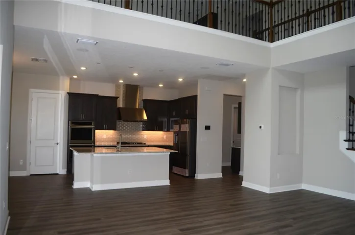 This Forthsyth model not only has the space, but a beautiful pond view and on a cul de sac road. Rivers Edge is a gated community offering a resort style pool, hot tub, fitness center, basketball, pickleball courts, and trails. This home is brand new and offers 5000 sq ft with 6 bedrooms, 5 1/2 bathrooms, Office, and Game Room. The first level has the primary room, office, bedroom with full bathroom, extended lanai, formal dining room, and a 20-foot-high open living room concept. The kitchen has all new stainless-steel appliance, gas cooktop, granite countertops, walk in pantry, and butler’s pantry. The driveway is fully paved and has an extension for additional parking spots if needed. The upstairs has a game room with 1/2-bathroom access, porch access, and wet bar! This community is located near I-75, restaurants, Wiregrass Mall, Tampa Premier Outlets, major roads, and more! This home is near 3 major hospitals (Advent Health, Orlando Health, and Baycare) making it perfect for any job relocations in the area.