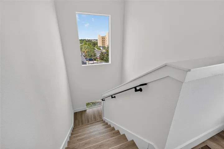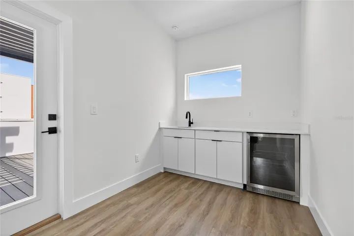 Enhancing your rooftop experience is a stylish wet bar with a wine fridge… perfect for morning coffee rituals or evening drinks under the stars. For added convenience, a full-size washer and dryer are thoughtfully positioned near the owner’s suite and second bedroom.