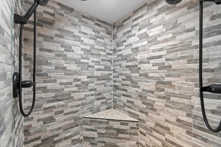 The spacious walkthrough kitchen is a chef’s delight, with Corian countertops, stainless steel appliances, ample cabinet space, and a convenient window to the outdoor kitchen. The kitchen opens to the family room, making it perfect for entertaining or everyday living. Each bedroom is generously sized with large closets providing abundant storage. The primary suite is a private retreat, boasting porcelain floors, a Jacuzzi tub, a luxurious walk-in shower with multiple shower heads, and direct views of the breathtaking 12-foot waterfall cascading into the custom heated pool.