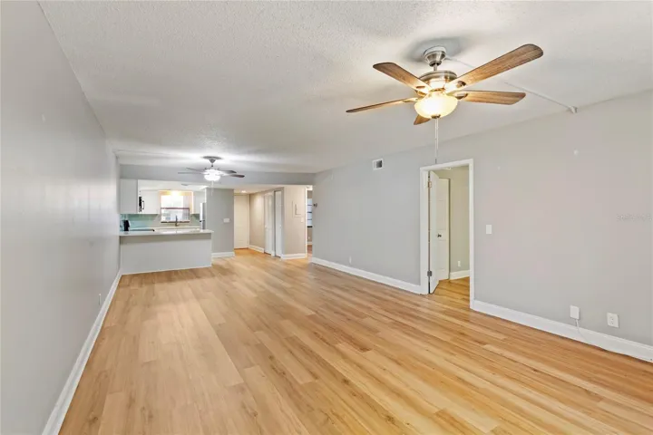 Welcome to Lafayette Square Condos in the heart of Largo! This spacious 2-bedroom, 2-bathroom first-floor residence offers 1,090 sq. ft. of comfortable living with a well-designed open layout. The living and dining areas flow seamlessly together, opening onto a private screened porch that overlooks landscaped grounds—ideal for enjoying Florida’s year-round sunshine. The primary suite features two walk-in closets and an ensuite bath, while the second bedroom and full guest bath provide additional space for family or visitors.