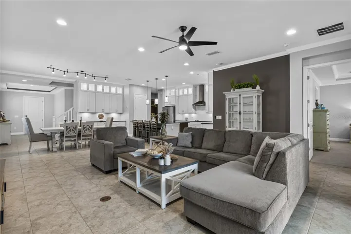 A home that balances luxury, function, and timeless appeal. Thoughtfully curated and impeccably designed, this five-bedroom, five-bath residence features dual Primary suites on separate levels, two laundry rooms—one upstairs and one downstairs—and a layout created for elevated, effortless living. The fully updated gourmet kitchen anchors the home with custom cabinetry, a designer backsplash, premium fixtures, and dual smart ovens, flowing seamlessly into open, light-filled living spaces ideal for both everyday comfort and refined entertaining. Luxury vinyl plank flooring installed in 2024 enhances the staircase and entire second story, while custom built-ins, crown molding, fresh interior paint, and plantation shutters add depth, warmth, and sophistication throughout. Multiple private balconies extend the living space outdoors, creating quiet retreats for morning coffee or evening relaxation. The outdoor living experience is truly resort-inspired, featuring a saltwater pool and spa with smart controls, a fully equipped outdoor kitchen with built-in grill and wine refrigerator, and decorative landscape lighting that beautifully illuminates the backyard and wraps the home in an inviting glow. Designed for enjoyment with minimal upkeep, the backyard offers low-maintenance landscaping, efficient drainage, and an upgraded irrigation system, all enclosed by a full screen cage and enhanced with a six-foot iron fence and privacy plantings. Extensive electrical upgrades completed in 2025 include designer lighting, exterior LED accents, in-wall wiring, new fixtures, and ceiling fans throughout, while the upgraded garage features overhead and wall-mounted storage systems for optimal organization. Located within the gated community of Eagle Creek, residents enjoy access to championship golf, resort-style pools, tennis courts, a clubhouse, fitness center, playgrounds, and miles of scenic trails, all just minutes from Lake Nona, Medical City, top-rated schools, premier shopping, dining, and Orlando International Airport—making 13857 Larkton Lane a rare blend of luxury, functionality, and lifestyle.