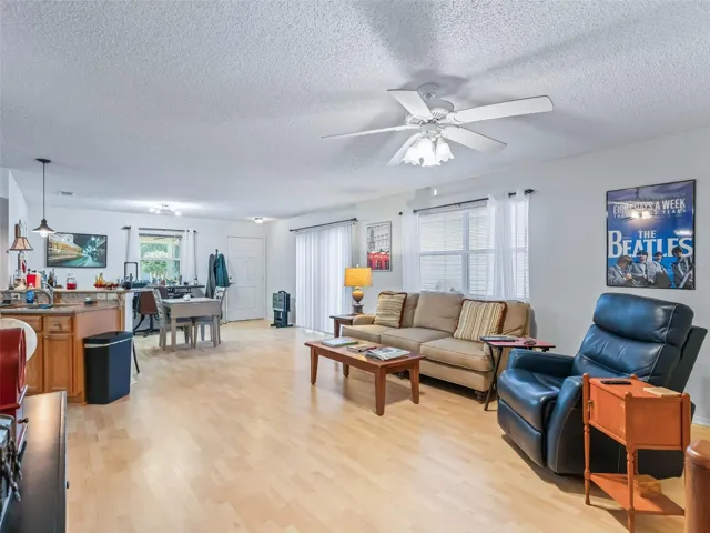 BOND PAID~! No Back Neighbors, PRIVATE SETTING~! TURNKEY Including 2016 Yamaha Golf Cart~! Light and Bright~! Enclosed Front Lanai, GRANITE Counters Throughout. ROOF 2019, GAS WATER HEATER (2013), GAS FURNACE, A/C (2013). INDOOR LAUNDRY with GAS DRYER~! Gas Cooking Available. NO CARPET. Large Open Living Room/Dining Room Area with NEW 75” TV and Newer Solar Tube. Primary Suite has Large Walk-In Closet and En-Suite Bath with Granite Counters and Solid Surface Shower. Guest Bath has Granite Counters and Tub/Shower Combination. Centrally Located with Many Executive Golf Courses, and Championship Golf Courses Nearby. Easy Golf Cart Access to Shopping, Hospital, Spanish Springs Town Square and Lake Sumter Landing Town Square. Truly a MUST SEE~!