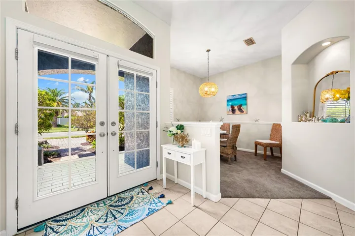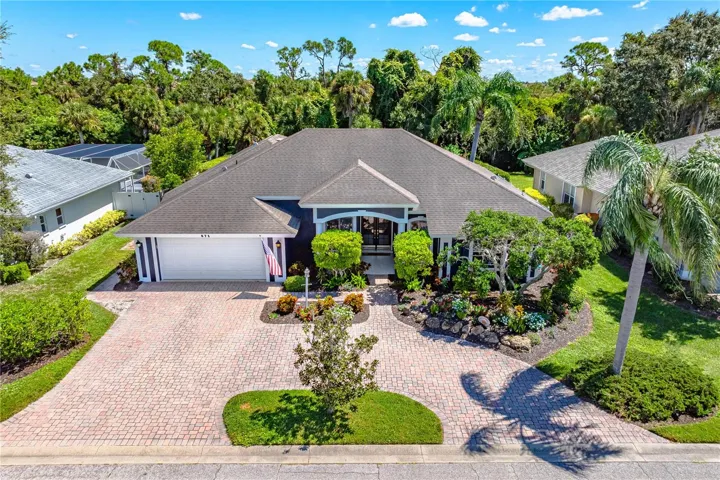 One of the largest homes in Bay Oaks Estates, this 5-bedroom, 2.5-bath single-story pool retreat delivers the best of indoor-outdoor Florida living with flexible spaces for guests, work, and play. Curb appeal pops with a brick paver circular drive, lush landscaping, and a covered, columned entry with French double doors and an arched transom.
