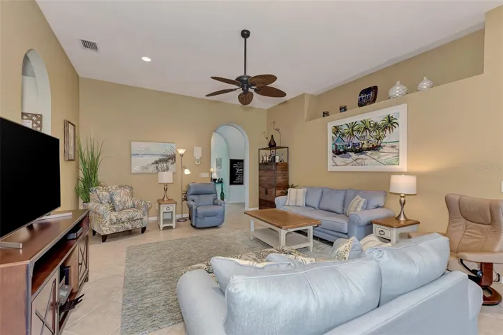 Indulge in a lifestyle where the beauty of nature meets the simplicity of living in the delightful community of Riverwood. Exquisite and lovely describes this beautiful Ibis Model home with its serene setting of preserve from both the front and back of the home . This well-appointed 2 bedroom, Den, 2 bath and 2 car garage home offers a completely remodeled kitchen and master bath ensuite. New ceiling fans in both the master and guest bedrooms. The large eat in kitchen has plenty of storage space with wood cabinets, granite countertops, stainless steel appliances, a walk in pantry and under cabinet lighting. The primary suite, with access to the lanai, has 2 walk in closets and an updated modern master bath which displays wood cabinets, granite countetops, walk in tiled shower, dual sinks and tile plank flooring. Enjoy your morning coffee and afternoon beverages on the extended lanai with a luxurious hot tub and privacy wall. New lanai screens in April 2024. FURNITURE currently in home INCLUDED. ADDED BONUS: NEW Heating & Cooling 2024 and entry light fixture. This is Floirda living at its best! Don’t let this extraordinary opportunity slip away. Enjoy all of Riverwood: GOLF CLUB NAMED *TOP 50 US COURSES* *GOLF ADVISOR* *2018*, ACTIVITY CENTER CAMPUS INCLUDES LAP & RESORT STYLE POOL, FITNESS CENTER, PICKLE-BALL COURTS, SMALL AND LARGE DOG PARKS, TENNIS COURTS, LAWN CROQUET, BOCCE COURTS, CRAFT ROOM, LIBRARY AND SOCIAL ACTIVITIES! Additional fees apply for Riverwood Golf Club & Private Beach Club on Manasota Key. Riverwood is Close to Tampa Bay Rays Spring Training Facility, Atlanta Braves Spring Training Facility, Gulf Beaches, Carlotte Harbor, Myakka River, Punta Gorda, Englewood and Boca Grande. Riverwood, a Perfect Blend of Florida’s Nature and Resort Lifestyle.