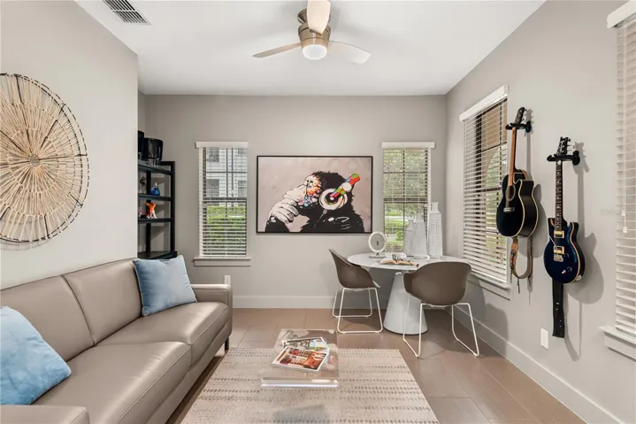 Experience the pinnacle of luxury in this Baldwin Park townhome, offering stunning park views and a short stroll to the scenic Lake Baldwin . Expect to be impressed as you enter this stunning, end unit, 4 bedroom, 3 ½ bath residence boasting high end finishes throughout and 2179 SF of bright and inviting living space! Upon entry, you’re welcomed by a versatile first-floor space featuring soft-close glass doors and a private full bath. This flexible space is ideal as a home office, guest suite, or cozy den. On the main floor, the open living spaces are designed for everyday comfort and stylish entertaining. Gorgeous, engineered wood floors flow throughout, bringing warmth and timeless style to the home. The gourmet kitchen takes center stage with a striking Quartz waterfall island with breakfast bar, glass tile backsplash, sleek cabinetry, and stainless appliances. It flows effortlessly into the stunning great room filled with natural light from an abundance of windows offering a tree-top view of Blue Jacket Park, all adorned with motorized pleated shades for elegance and convenience. The dining room features a gorgeous light fixture, creating a stylish setting for meals and gatherings. Retreat upstairs to the primary suite with tray ceiling, and an impressive, updated bath featuring stone counters, dual sinks, walk-in closet, and spacious glass-enclosed shower. Bedrooms two and three are joined by a thoughtfully designed shared bath. Enjoy the outdoors with a charming first floor covered porch and second floor covered patio, perfect for taking in the views. Updates include: freshly painted interior with premium warm-tone coating, upgraded garage flooring with durable epoxy coating, garage complete with electric charging station, modernized all lighting and ceiling fans throughout the home, Security system, new modern Samsung oven, and renovated and upgraded laundry room. Seller is willing to sell the home furnished. Perfect location within a short walk to the city center on New Broad street with restaurants, shopping, banks, pharmacies, dog parks, and docks to enjoy Lake Baldwin. Baldwin Park offers 3 community pools and 2 workout facilities and has easy access to Downtown Orlando, Winter Park, and the Orlando International Airport.