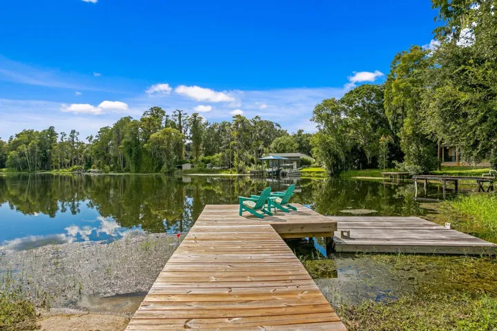 PRICE IMPROVEMENT! **Take a VIRTUAL VIDEO TOUR of this home now at www.19116Forrest.com** Get ready to enjoy the Odessa lake life in your beautifully updated pool home. Situated under mature Oak trees and on a tranquil, nearly half-acre lakefront, non-flood zone lot, this home is zoned for one of Hillsborough County’s premier school districts – all A-rated schools (Hammond/Martinez/Steinbrenner)! With nearly, 2,300sqft of living space, this home features 4 bedrooms, 2 baths and an oversized 2-car carport. With no HOA or CDD restrictions, you can bring all of your toys and enjoy your large, lakefront lot. As you arrive, you’ll find a large front yard and two majestic Oak trees that perfectly frame your newly painted ranch home. A brand-new dimensional shingle roof was just installed, along with a new front door. There’s plenty of parking on the long driveway along with additional storage under carport that can be easily converted into a 2-car garage. Upon entering, you’ll find hardwood floors and an open-concept floor plan with a combined living and dining room. The living room features a beautiful wood-burning fireplace flanked by custom built-in, lighted shelves. The dining room offers plenty of space for sharing meals with family and friends. Beyond the living room is the kitchen that includes thick granite counters, a complete set of updated Kitchen-Aid stainless appliances and loads of cabinets for storage. The split-bedroom floor plan provides privacy for the residents. The primary suite includes luxury vinyl plank floors, a ceiling fan, large primary bath and walk-in closet with custom shelving. The primary bath includes a new vanity, granite counters, dual sinks, updated fixtures, an oversized garden tub and separate shower. On the opposite side of the home, the 2nd and 3rd bedrooms are spacious and share an updated full bath, complete with granite counters, dual sinks and a tub/shower combo. A spacious utility room offers cabinet storage and a tankless water heater for unlimited hot water. Beyond the kitchen is a large family room with dual French doors that open to your private pool. Adjacent is the 4th bedroom that also has French doors that open to the pool and it would make for a perfect home office space. As you step outside, you’ll find a large, freshly re-screened, 1,000sqft enclosed lanai. A freshly updated pool deck sparkles in the Florida sun and you’ll enjoy preparing meals in your outdoor kitchen with granite counters. The private pool includes a gas-heated spillover spa. Step outside to your large, fully-fenced backyard that includes a separate storage shed and lakeside fire pit. The private dock has been recently replaced and includes a separate detachable floating dock that you can bring out to the middle of the 18-acre Lake Wood for boating, swimming and fishing fun. Don’t wait to make this your new lakefront oasis today!
