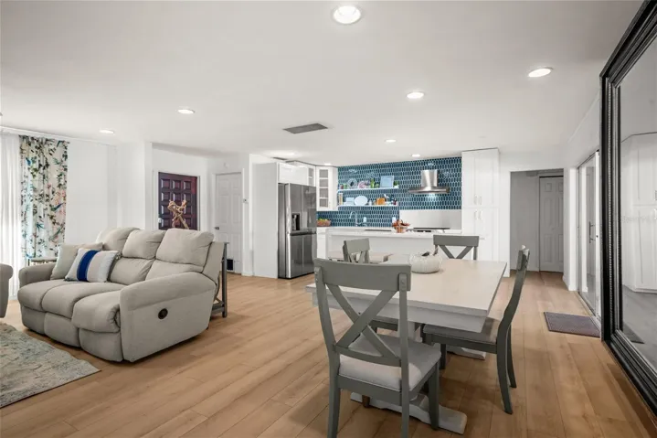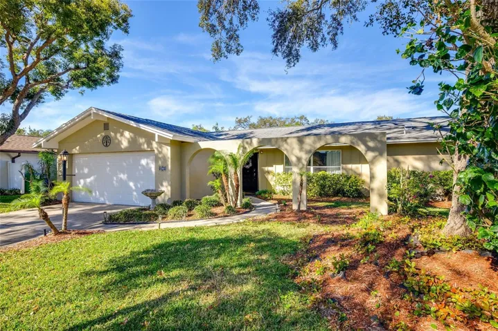 Relaunched and Refreshed! Desirable 3 bedroom, 2 bath, split plan, 2 car garage pool home in serene, tree-lined neighborhood that blends comfort and style and Florida living all at an improved price! From the moment you arrive, you’ll notice the freshly painted exterior and inviting curb appeal that set the tone for what’s inside! The home has been professionally staged to showcase its best features and help you envision everyday living and entertaining with ease. Step inside to an open and airy great room layout, perfect for modern lifestyles—whether you’re hosting friends, enjoying family movie nights, or working from home- there is space for the whole gang to spread out and enjoy! The split-bedroom floor plan offers privacy and flexibility, ideal for families, guests, or multi-generational living. The updated kitchen is the heart of the home, featuring quartz countertops, stainless steel appliances, custom soft-close cabinetry, a designer tile backsplash with room for sleek yet functional floating shelves plus a spacious island ideal for casual dining, prep, or gathering with family and friends. The primary suite is a true retreat, featuring a luxurious custom walk-in rain shower that feels like a spa at home. Two additional bedrooms are well-sized and thoughtfully positioned, sharing a full bath and tons of storage convenient for daily living or visitors.
