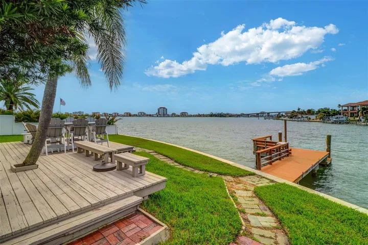 Wake up to breathtaking sunrises and wind down your evenings with stunning sunsets; this prime location affords quick access to the Gulf waters from your very own private dock. Enjoy 111 feet of unobstructed water frontage. The open concept living space, coupled with a chef’s kitchen inclusive of a large island, guarantees a view of the tranquil Boca Ciega Bay from every angle.