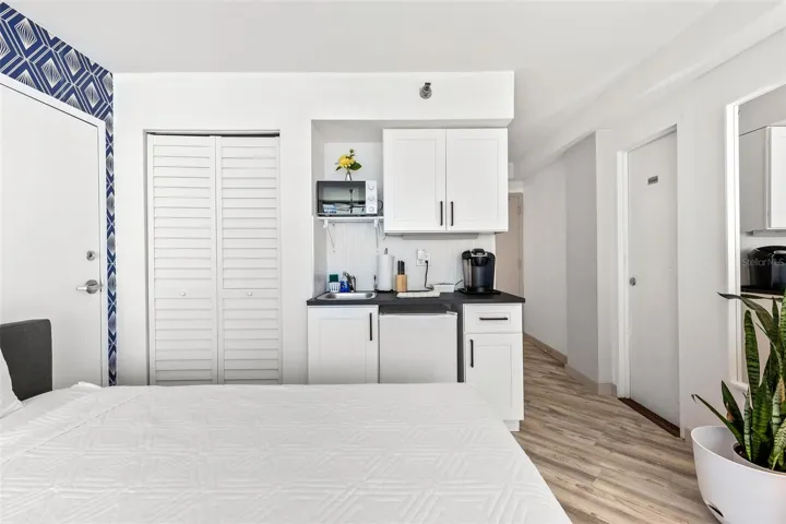 Turnkey Oceanfront Investment Opportunity – Stunning double unit condo in Daytona Beach! Discover the perfect blend of luxury, flexibility, and income potential with this rare “hotel” style condominium located on the expansive shores of world-famous Daytona Beach. These two beautifully updated studio units, connected by a convenient pass-through door, can be rented individually or together as a spacious 2-bedroom suite—offering maximum rental versatility! Each meticulously maintained unit features partial ocean views, stylish furnishings, and comfortable sleeping arrangements for up to 4 guests in each room. The sale includes all furnishings and as well as future bookings with rental management already in place – making this a turnkey investment. with future income already on the books. As an added bonus, Unit 412 includes a 5’x10’ storage room, ideal for owner storage, rental supplies, or even an additional sleeping nook or workspace. The building itself has undergone extensive renovations over the last two years, boasting a modernized lobby and front desk, fresh paint and carpeting throughout the hallways, a conference room, and fitness center. You will love the oceanfront pool with panoramic views, the poolside Tiki bar & restaurant, a baby pool, and direct beach access. Parking is a breeze with a two-story garage conveniently attached to the building for easy side access to the elevators. Whether you’re looking for a high-performing short-term rental, a vacation getaway, or a mix of both, this property delivers! Don’t miss this exceptional opportunity—schedule a showing today! HOA fee covers both units.