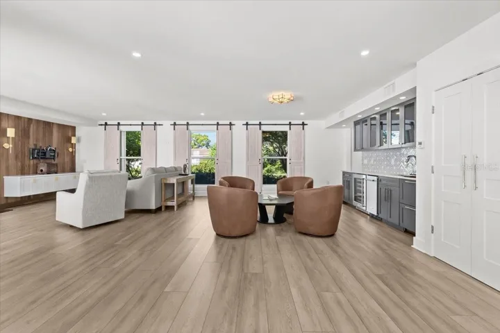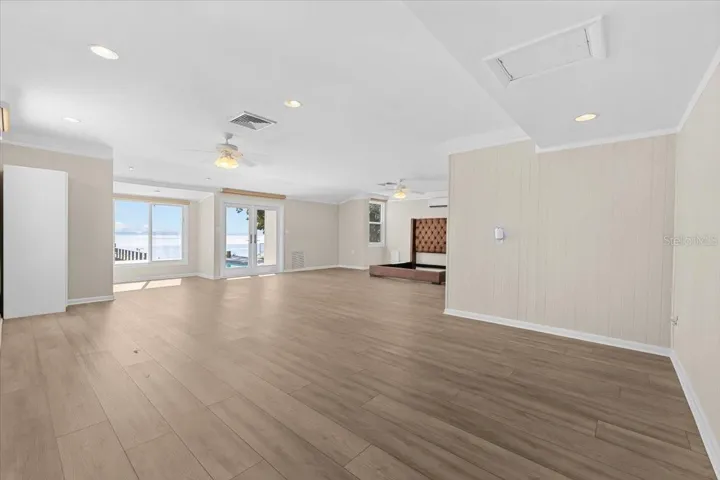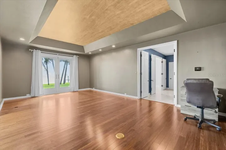 The FIRST FLOOR BEDROOM has an exterior door leading out to the back lanai and is large enough to be an in-law suite, a second primary bedroom, or transformed into a game room. The sky is the limit for this unique space.