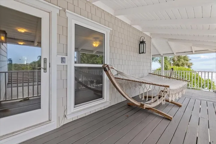 This home features a library with floor to ceiling solid wood shelving and a fireplace that is like something out of a fairy tale! If the library isn’t cozy enough, there’s a total of THREE fireplaces throughout the home. With 5 bedrooms and 5 and a half bathrooms, you’ll have enough space for everyone. There’s even a bonus room with a view that would make working from home, exercising, or whatever you want to do in there seem like you’re still on vacation somewhere! The covered balcony of the second floor runs the length of the home, giving the bedrooms along the back not only a view from their window, but a place to step outside and FEEL the bay breeze. This home was designed to enjoy the views as both stories have an outdoor space that runs the entire length.