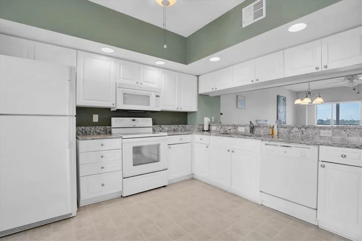 Inside, the spacious living area opens to a screened-in lanai, perfect for relaxing or entertaining while soaking in peaceful water views. The open-concept, eat-in kitchen features high-end quartz countertops, refaced cabinetry, ample storage, and a large pantry, creating a bright and elegant space for cooking and gathering.