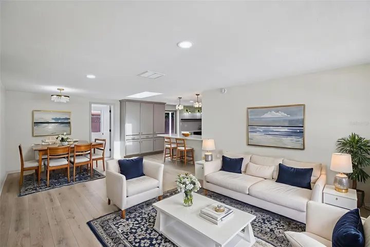 One or more photo(s) has been virtually staged. New price $285,000! A fully updated home at this price won’t last. Schedule your showing before it’s gone! Welcome to the heart of New Port Richey, where style meets comfort in this fully renovated 3-bedroom, 1.5-bathroom home that leaves no detail untouched. From the moment you arrive, the covered front porch invites you to slow down and take it all in. Step inside to find luxury vinyl plank flooring guiding you through an open-concept layout where the living room transitions seamlessly into the dining space—perfect for everyday living and entertaining alike. The designer kitchen steals the show with its quartz countertops including a newly added breakfast bar, ample cabinetry including a built-in pantry, new model stainless steel appliances, and a skylight that floods the space with natural light. Every inch was thoughtfully curated by an interior designer—from the gold finishes and modern backsplash to the open shelving and warm wall sconces that create the perfect blend of modern sophistication and cozy charm. The primary bedroom features elegant wallpaper and beadboard paneling, creating a space that feels both tranquil and elevated. The main bathroom continues the theme, offering a vintage-meets-modern vibe with a new vanity, gold hardware, beadboard detailing, and stylish wallpaper. Each additional bedroom provides comfort and flexibility for guests, family, or a home office. Step outside to your fully fenced backyard, complete with a spacious patio and retractable awning, ideal for hosting summer barbecues or relaxing in the shade. With no flood zone, no HOA, and no CDD fees, this property gives you the freedom to truly make it your own. This home is conveniently located just down the road from Gulf High School, one of the few schools in the area offering the prestigious International Baccalaureate (IB) program, known for preparing students for top universities worldwide. Nearby Sims Park, features a state-of-the-art splash pad, playground, outdoor workout equipment, and year-round festivals. You’re also just minutes from Downtown New Port Richey’s lively Main Street, where historic charm meets modern living. Explore a variety of eclectic boutiques, local breweries, restaurants, coffee shops, and weekend farmers markets. Whether you’re catching live music by the Cotee River, kayaking along its serene waters, or joining one of the community’s many parades or art walks, there’s always something to enjoy. With easy access to US-19, commuting to Tampa, Clearwater, or the surrounding Gulf Coast beaches is a breeze. This prime location, paired with thoughtful designer updates and a true sense of community, makes this home an exceptional find. Schedule your showing today and experience everything New Port Richey has to offer.