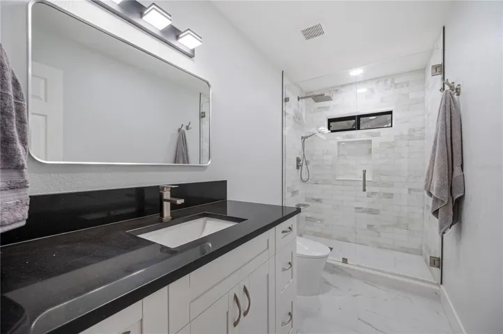 NO HOA! NO CDD!, NO Water bill, NO Sewer bill! Horse friendly! Bring the goats, bring the toys! This outstanding home located on 2 private acres, has to be seen to be believed!! Completely gated, Everything has been updated with exquisite attention to detail by the current owner. A slice of Old Florida charm with every modern convenience! Open floor plan, that accentuates the outside view through the bay window in the spacious living room. The whole home boasts real Harwood flooring throughout and sleek porcelain tile in kitchen and baths. Once inside you will be captivated by the old Florida touches in the dining room, from the cedar ceiling to the freestanding wood stove. New sliders open to the area of the patio that is covered with insulated panels and a skylight. The entire patio is covered in pavers and fully screened with access to the generous pool and spa. The kitchen is a cooks dream! Plenty of cabinets for storage, gleaming granite countertops, waterfall edge, stainless steel appliances and a wine/beverage fridge! The large walk in pantry & storage filled breakfast bar can hold all the entertaining items you may have. Just off the kitchen is the coziest breakfast room with wood details and casement windows – Old Florida feel, right there! Primary bedroom is very spacious, enjoy 2 walk in closets and a private bath that has been remodeled and personifies European luxury. Heated, smart commode with built in bidet and remote, whirlpool tub and separate steam shower, all enveloped in the most elegant porcelain tile walls. You will feel like you are in the Mediterranean! Each bathroom has been remodeled to the finest detail, granite vanities, tiled showers, even the pool bath is stunning. This home has a porte-cochère, generously sized for bringing in groceries during the summer rains. Owner entrance on this side of the home is covered, and leads into the lovely, spacious mudroom, complete with a/c and an original second stone fireplace, large window and additional front entrance completes the space. Through the double doors, you will find the inside laundry room on the left, Family room is currently utilized as an office, but perfect for a guest room or den. Kitchen is directly to the right for grocery convenience. Outfitted with the latest stainless steel appliances including a wine/beverage refrigerator. Outside space is unbelievable! Stone pavers line the floor of the completely screened pool/patio area, loads of space for dining al fresco, pool parties, whatever strikes your fancy. Completing this very special property is the 2 story Barndominium. Currently outfitted as a gym with 2 a/c units and all equipment stays! Second floor has flooring & electric, perfect for a clubhouse/teen hangout! 2 additional storage sheds on property for all the toys. Fully fenced and the cute cows are your current neighbors! 2 full acres, NO HOA, private septic & well system, recent roof replacement & newer windows. Close to Lithia Springs and Alderman’s Ford Conservation area, easy access to Brandon. Make this your forever home, it’s a beauty!!