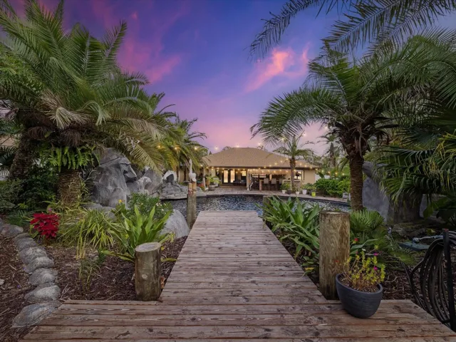 Ever dreamed of living in a resort but without the wristbands, the strangers in matching towels, or the all-you-can-eat buffet shame? CONGRATULATIONS! Your dream has arrived! This 2021-built tropical paradise sits on .55 acres with NO HOA, which means you can live your most glamorous Florida life without anyone telling you your flamingo décor is “too much.”Inside, this 3-bedroom, 2-bath home with a den/office delivers all the comfort and style you could want. The bright, open floor plan features a stunning kitchen with upgraded cabinets, granite countertops, stainless steel appliances, and enough counter space for actual cooking or, you know… displaying takeout menus. The split-bedroom layout offers privacy, the den makes the perfect office or guilt-free nap room, and the 2-car garage gives you plenty of storage for cars and questionable Costco purchases. But let’s be honest: The backyard is the main character.Step outside and prepare to instantly forget what day it is. Your very own resort-style lagoon pool awaits. Complete with six cascading waterfalls, lush landscaping, and a peaceful back pond that flows into the main pool like nature’s own special effects department. The huge deck, gazebo, and full tiki bar scream “Let’s entertain!” with two mini fridges, a kegerator, an ice maker, and a sink. Basically, it’s a fully functioning outdoor party headquarters or the perfect place to sit alone and pretend you’re on vacation in Tahiti while sipping a beverage and ignoring emails.You also get two storage sheds, a fully fenced yard, and landscaping so well-designed it deserves its own Instagram account. This isn’t just a home, it’s a lifestyle, a mood, a whole personality. And yes, it’s absolutely a one-of-a-kind retreat you need to see to believe. SELLER IS INVITING ALL SERIOUS OFFERS- so bring yours before someone else claims this backyard paradise and forces you to live with regret.