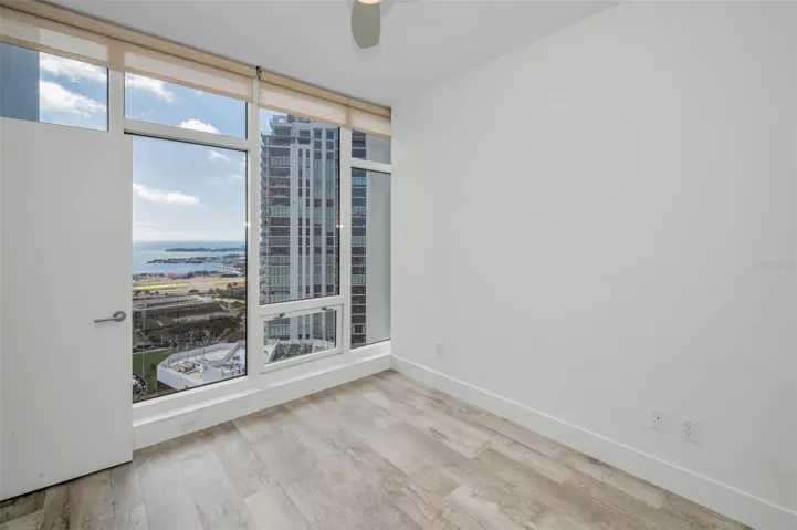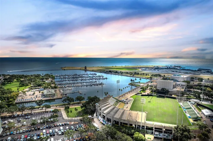 One or more photo(s) has been virtually staged. Experience elevated living in this 26th floor 2 bedroom / 2 bathroom condo showcasing sweeping southeast views of Tampa Bay and Downtown St. Petersburg from every room. Enjoy morning coffee or evening cocktails from the expansive balcony while overlooking Tampa Bay, Albert Whitted Airport and The Rowdies stadium. As you enter your front door you are welcomed by a wonderful open floor plan that features a lovely kitchen equipped with stainless steel appliances, granite countertops and a breakfast bar with floor to ceiling windows & sliders offering natural light throughout. The split floor plan is perfect for any living situation and leaves you with many options. Use the second bedroom for guests, as an office or even both! The Owner’s Suite offers gorgeous views, a large shower, soaking tub, dual vanities and two closets. You will find the washer and dryer conveniently located inside the Owner’s suite along with ample storage space. Additional features of this residence include two parking spaces, a climate controlled storage space and amenities galore which feels as if you are living in a resort and include a heated infinity pool, hot tub, fire pit, fitness center, two social rooms and 24 hour concierge. Located in the heart of downtown St. Pete you will find everything you need is right outside your front door with restaurants, shops, cafes, night life, markets, art galleries, grocery stores, Tampa Bay and the St Pete Pier and so much more all within easy walking distance. Don’t miss this opportunity to experience a lifestyle of Downtown living from one of St Petersburg’s most iconic and highly sought after luxury condo buildings!