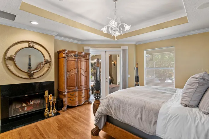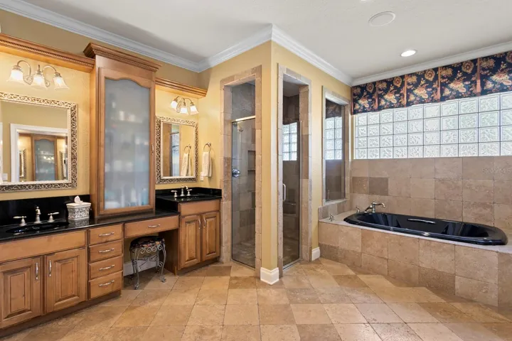 Located in the prestigious manned and guard-gated community of Cory Lake Isles, this northwest-facing, one-of-a-kind custom estate sits on an oversized homesite with private conservation views. From the moment you arrive, the curb appeal is undeniable—an impressive winding pavered driveway leads to a charming courtyard entry and stately double-door foyer. Inside, you’ll find 5 bedrooms, 5 bathrooms, a private office, and a large bonus room, all showcasing custom craftsmanship and rich finishes. The grand foyer sets the tone with soaring scale, column accents, and wood floors that flow through most of the home. The office features plantation shutters, built-ins, and elegant wood flooring, while the formal spaces impress with crown molding, a coffered ceiling, wet bar, built-in hutch, and a wood-burning dual fireplace that is featured in both the living room and primary bedroom. The primary suite is a true retreat with wood floors, and a spa-inspired bath featuring tumbled marble flooring, walk-in closet, detailed tile accents, and custom maple cabinetry. The gourmet kitchen is designed for entertaining with stainless steel appliances, double ovens, maple cabinetry, granite countertops, and an oversized island workstation. The split floor plan ensures privacy, placing the primary suite near the formal areas, two bedrooms near the kitchen and family room, and two more bedrooms toward the rear of the home. The family room highlights wood floors, custom built-ins, and pocket sliding glass doors opening to the outdoor living space. Upstairs, the oversized bonus room offers a full bath and kitchenette with refrigerator, sink, and microwave—perfect as a media room, guest quarters, or in-law suite. The outdoor oasis is extraordinary, with a full outdoor kitchen, large covered lanai, heated spa, cascading waterfall, self cleaning pool, fire pit seating area, and extended pavered patio, all surrounded by lush landscaping. Cory Lake Isles is more than a neighborhood—it’s a lifestyle. Residents enjoy a 165-acre ski lake for boating, fishing, and water sports, along with resort-style amenities including a waterfront beach club, fitness center, playgrounds, parks, tennis and pickleball courts, and a community pool. This rare estate offers luxury living inside and out, with the best of Tampa’s premier gated lakefront community. Welcome Home!