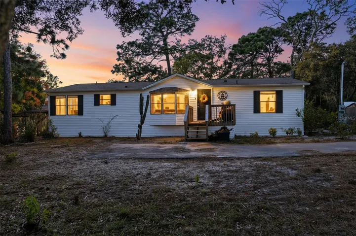 4 acre property in Highlands Subdivision in Hudson with an updated, 3 Bedroom, 2 Bathroom well-maintained manufactured home. Bring your farm animals and enjoy this non flood zoned usable 4 acres. As you enter through the gated entrance and drive up the long newer driveway to the stunning country setting you will impressed with the peace and quiet this property offers. The living room is adorned with a woodburning fireplace to take the chill off during our cooler winter days/nights and adds to the country charm of this home. Kitchen is large with updated cabinets. Primary bedroom is split from the two secondary bedrooms offering privacy. New Barndoors from the primary bedroom to the primary ensuite bathroom. ZONED AC AGRICULTURAL. NO HOA! NO CDD! ROOF 3 YEARS NEW. WELL HAS A 3 YEAR NEW WELL PUMP. SEPTIC- NEWER DRAIN FEILD IN THE LAST 8 YEARS. HVAC 2018. BOTH SHEDS STAY. Fully fenced property. This home is close proximity to 19 and county line, shopping, restaurants, medical. The pool, trampoline, and swing set will be removed prior to close.
