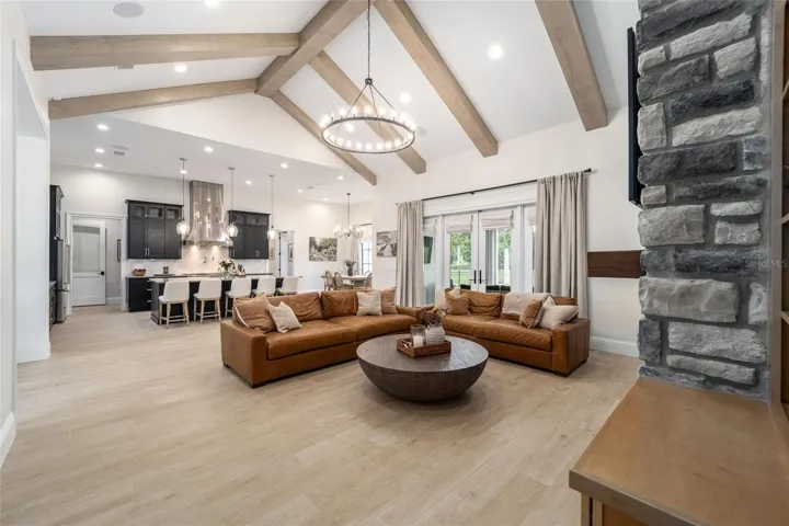 Outdoor living is nothing short of resort-caliber. A screened lanai with electric Phantom screens creates a cool, breezy environment that opens to a heated and chilled pool, summer kitchen, and fire pit, ideal for elegant entertaining or quiet evenings overlooking the grounds. The entire property is fully irrigated with precision Fibernom drip systems for lush landscaping year-round, and an advanced multi-camera security system covers both the residence and barn for complete peace of mind.