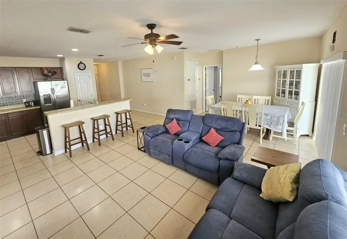 Enjoy entertaining your guests and loved ones within this HUGE, oversized lot! This beautiful 4-bedroom and 2-baths contemporary home is the perfect setting for growing families. The Cherry Wood Cabinets, Stainless Steel Appliances, and the Island within the kitchen give this lovely home the luxury touch. The Open Floor Plan and split bedrooms offer natural lighting. Enjoy candles and music while indulging in the garden tub within the primary bathroom. Classy brick pavers dress in the oversized driveway. Great Location offering Easy Access to major highways: Highway 50, Highway 27, and FL Turnpike. The best price within a growing community. Low HOA and no CDD! Call This Beauty Home!