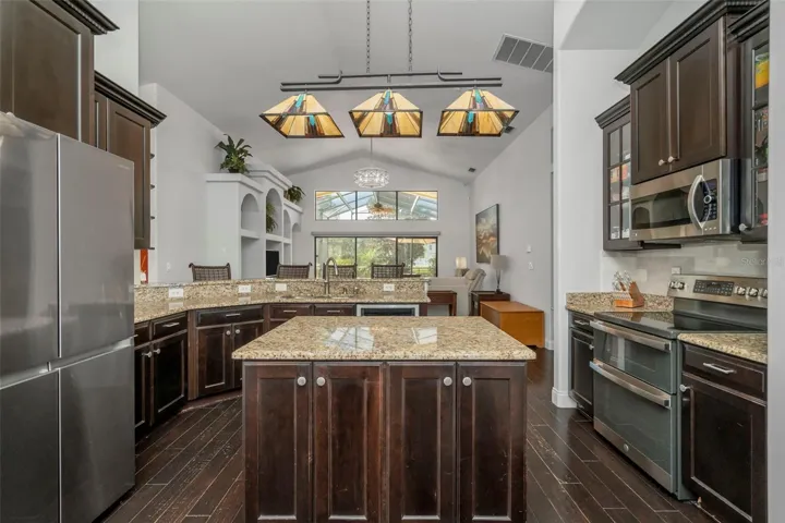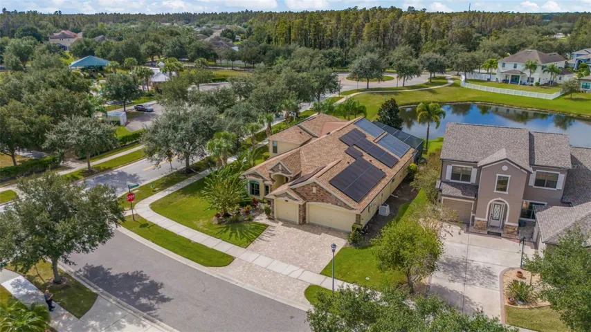 Outdoors, enjoy a heated saltwater pool with nebulous lighting, pavers in the pool and grill areas. OWNED SOLAR for the home and pool means saving thousands a year on electric! Additional features include a 3-car garage, water softener and filtration system with sink dispenser, alarm system, two HVAC systems with UV lights, and a NEW ROOF (2023).