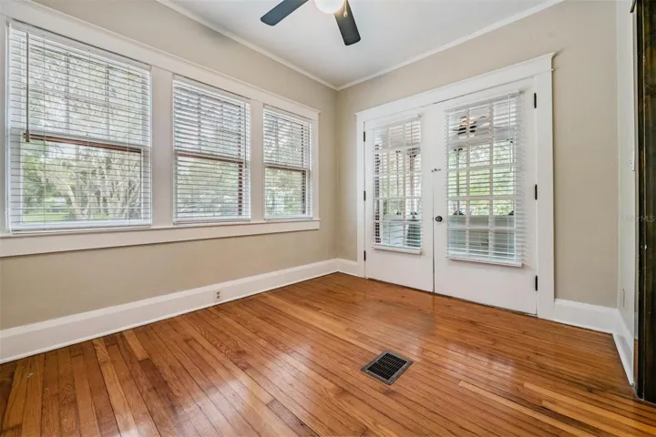 Charming 1925 bungalow duplex with 2 bedrooms, 1 bath plus a den/office in Northeast Seminole Heights. You have nearly 1,000 square feet to spread out and you can also enjoy the screened front porch or the back deck. There are ceiling fans throughout, wood floors, high ceilings,