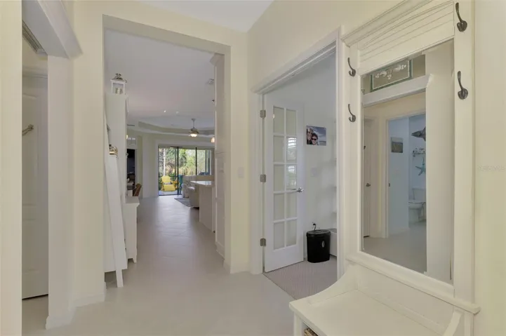 One or more photo(s) has been virtually staged. Very rare – price reduction under $400K with numerous upgrades to this beautiful Villa! Nestled in the sought-after Grand Palm community, this meticulously kept Villa has 2 BDRM, 2 BA with Study/Den that can also be used for additional guests that adds comfort and functionality in a serene resort-style setting! Inside you will find modern upgrades including a new shower and vanity countertops in the guest bathroom, improved shower design in the primary bathroom, custom privacy accordion shades for both the guest and primary bathroom suites, Rev-A-Shelf cabinet organizers in the kitchen and primary bathroom, custom kitchen pantry, upgraded kitchen appliances, vented microwave range hood, enlarged kitchen island with new countertop, plantation shutters, new A/C in 2018, new water heater in 2024, hurricane shutters for the entire villa, custom privacy accordion lanai shade and so much more! Enjoy your quiet peaceful evenings on the extended lanai with an added paver patio while enjoying the tranquil backyard with a preserve setting on a larger lot. This section of Grand Palm has their own community pool, hot tub and outdoor BBQ grill available only to residents living within. Grand Palm is an amenity-rich community with an abundance of activities to keep you busy with 26+ miles of walking/biking paths, tennis, pickleball, a fitness center, three additional community pools, splash pad, dog parks and a full-time Activity Coordinator. Just a short drive to beautiful Gulf Beaches, Historic Downtown Venice, vibrant Wellen Park, the Atlanta Braves Stadium and easy access to I-75. Living the life you have earned can be more than just a dream, so schedule your private showing today!