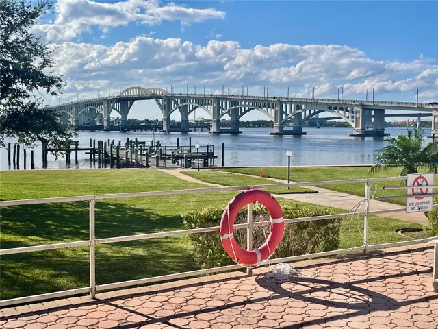 This 2 BR / 2 BA Riverfront Complex is less than one half mile to the beach. Pendleton Club represent one of the most stable and sturdy construction in the area, never flooded, never loss power, and no hurricane can collapse it monolithic concrete walls. Indoor corridor system, quiet… Residents love it and you feel and see their pride in the property. Floor to ceiling hurricane windows in LR allows a great views. Pool is surrounded by tropical landscaping. Pool deck is a great location to watch spectacular sunsets. Enjoy fishing from the dock or watch the space launches from the Cape. Boat slips available for rent as well as boat trailer parking. Condo is close to restaurants and shopping. The doorman is there every day from 8AM and until 8PM. Excellent grounds. Over 400′ on the river. You can walk along the river, sit n benches. BBQ area. Kayaks on the fence by the boat ramp. And all this on the backdrop of Veteran’s Bridge, the architectural beauty by your building, taking you to the heart of Daytona – Beach Street with its boutiques and restaurants along the Riverfront Park. The condo is move in ready and. Doorman on duty to assist residents with groceries, purchases, luggage, etc. On site manager. . On Sentrilock. Pictures,photographs,colors,features are for illustration purposes only. Square footage and dimensions are approximate.
