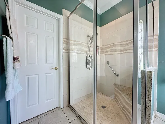 The expansive primary suite is a private retreat featuring a versatile sitting area perfect for a reading nook or office. The spa-like primary bathroom has been luxuriously upgraded with a large tiled walk-in shower, granite counters, upgraded lighting, and spacious his-and-hers walk-in closets with custom California-style built-ins.