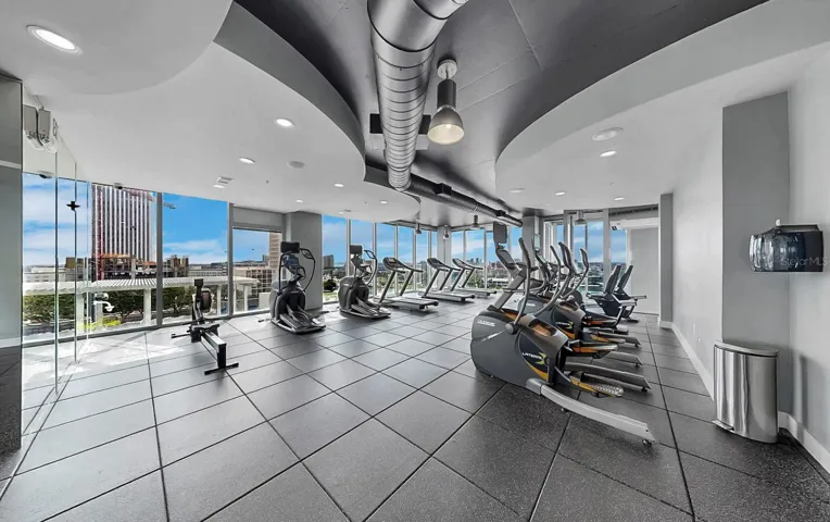 Experience elevated urban living in this corner 2-bedroom, 2-bath residence on the 17th floor of SkyPoint, showcasing a PRIVATE WEST FACING balcony offers daily sunset unobstructed panoramic views through the 14′ floor to ceiling IMPACT GLASS to Tampa Bay, the Downtown skyline, Hillsborough River, Curtis Hixon waterfront Park, University of Tampa; one of the most distinctive and upscale condos in the heart of Downtown Tampa! The sophisticated design interior spans at 1110 sf, thoughtfully upgraded with renovated wood plank tile flooring throughout, refined industrial-style concrete ceilings, remote operated Sunshades, fresh interior paint, and a true split-bedroom layout offering privacy and flexible living. Enter through a generous 10′.5″ foyer leading to the chef inspired kitchen features GE Profile stainless steel appliances, a waterfall-edge island with extended breakfast bar seating, custom cabinetry with spice pull-out, expanded drawer storage, tile backsplash, pendant and recessed lighting, custom hardware, and a touchless Moen faucet overlooking the perfect entertainment/living room space with optional dining open to the spacious balcony with unobstructed views. This split floorplan offers an oversized Primary suite with a 3-foot architectural kick-out/ledge, expansive tall vanity DUAL sterling Sinks, Private Garden soaking tub, separate walk-in glass encased shower with WALK-IN CLOSET! Both bedrooms feature private en-suite bathrooms/Guest Suite or Ensuite OPTION with Linen Closet! Entire unit offers floor-to-ceiling breathtaking backdrops! Additional features include Hampton Bay ceiling fans, floor outlets for flexible furniture placement, Walk-in Pantry, Laundry Closet including new Maytag Washer/Dryer plus amble storage. SkyPoint provides unmatched amenities including 24-hour concierge, controlled building access, billiards room, theater room, club lounge, grilling stations, fire pits, and multiple indoor and outdoor social spaces. Saltwater hot tub, Pool, Outdoor grilling stations, Outdoor kitchen, and a beautifully landscaped park in the sky. State-of-the-art dual fitness center, a residents’ clubhouse with a catering kitchen & bar, lounges, and a private theater room. Embrace the city’s best attractions, with easy access to the trolley, water taxi, and Tampa International Airport. This meticulously renovated residence is your gateway to the very best of Tampa, offering a turnkey experience in a world-class location. Two assigned parking spaces in the secured garage are included. Located in the heart of Downtown Tampa, steps from public transit, the Tampa Riverwalk, Curtis Hixon Park, Straz Center, Amalie Arena, Armature Works, Water Street, Channelside, restaurants, and cultural venues. Pet friendly building. Condo fee includes; maintenance, roof, trash, water/sewer and cable! The ground floor is home to a variety of dining options, and the vibrant culture of Downtown Tampa—with its festivals Move-in ready and available for immediate occupancy. Book your exclusive SUNSET showing because this view deserves to be experienced in person.