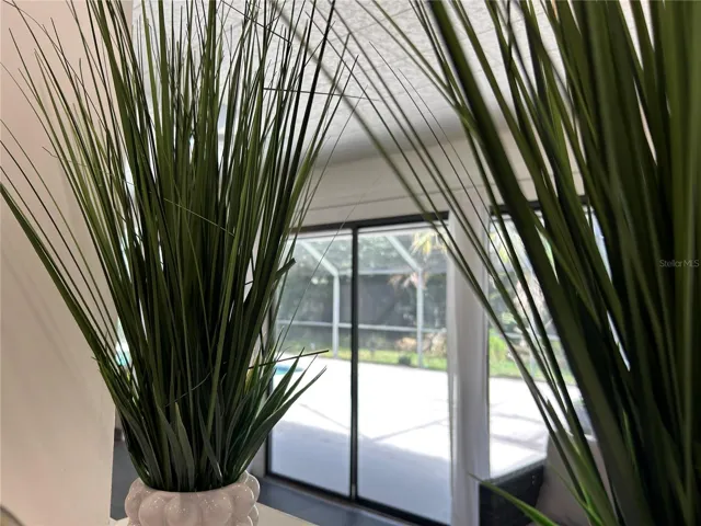 The Florida room opens to the extended lanai and heated saltwater pool, with a third full bath conveniently located nearby.