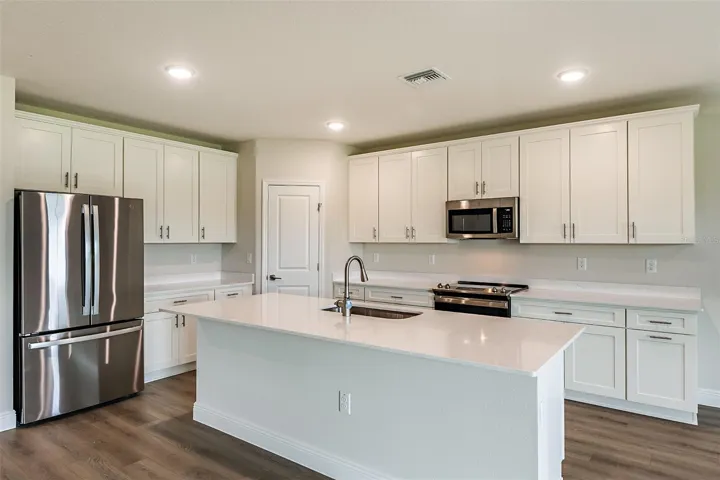 Under Construction. Live boldly in the Violeta, a two-story masterpiece featuring 5 bedrooms, 3 bathrooms, den and 3-car garage. The open-concept layout invites you into a stunning kitchen that seamlessly flows into the expansive living and dining areas, which opens to a generously sized lanai—perfect for both hosting and relaxing. The kitchen was designed to impress with sleek quartz countertops, 42” upper cabinets, stainless steel appliances and luxury vinyl plank flooring. A versatile den, accessible from the foyer, offers an ideal spot for a private office or home gym. On the first floor, a secluded guest suite with its own bathroom ensures comfort and privacy. Upstairs, you’ll find a flexible recreation room alongside the luxurious owner’s suite, featuring a floor-to-ceiling tile walk-in shower, dual vanities, and an oversized walk-in closet. The additional bedrooms are also located upstairs with the spacious laundry room! Outside, the stylish elevation and professional landscaping enhance the home’s curb appeal, while the smart thermostat ensures perfect comfort year-round.