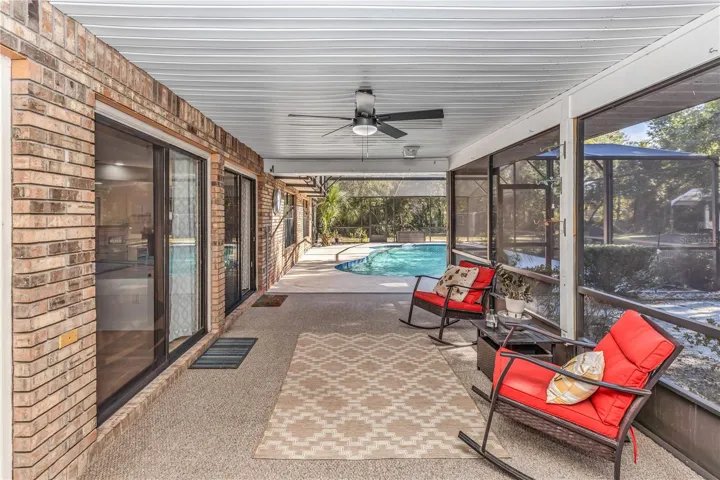 Priced below appraised value! Welcome home to this beautifully renovated 3 bedroom, 2 bath with flex space retreat on just under an acre in the desirable Deltona Estate area! Thoughtfully updated between 2024 and 2025, this 2,313-square-foot home offers the perfect blend of modern comfort and timeless charm in a peaceful, natural setting with lovely views of Sidney Lake just across the street, and best of all, no HOA! Step inside and you’ll immediately feel the warmth of the open concept layout, with vaulted ceilings and luxury vinyl plank flooring that flows seamlessly throughout, no carpet here! The bright, spacious kitchen is a true centerpiece, featuring quartz countertops, stainless steel appliances, a walk-in pantry, and a water filtration system. Whether you’re cooking a family meal or hosting friends, it’s a space designed for connection and comfort. Two inviting fireplaces bring cozy character to the living areas, creating the perfect spots to unwind and enjoy time with loved ones. Outside, your private backyard oasis awaits complete with a screened lanai, sparkling pool with auto scrubber and skimmer, an outdoor shower, new pool pump (2024), and new pool timer (2025). The yard is surrounded by mature trees, including natural citrus trees that add both beauty and privacy. With an oversized two-car garage, storage shed, newer roof (2023), HVAC (2021), and new septic drain field (2019) pumped and inspected 11/13/2025, this home is truly move in ready and built to enjoy for years to come. Offering added peace of mind, a home inspection with clean 4-point inspection was recently completed. Situated on a quiet corner lot close to schools, shopping, the beach, parks including Gemini springs. This property provides both space and serenity, everything you’ve been looking for in a place to call home. May be under audio and video surveillance.