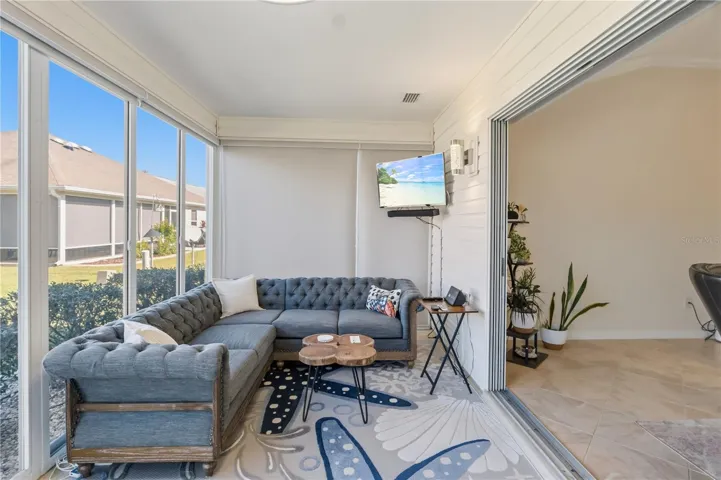 Inside, you’ll find an updated kitchen featuring a new refrigerator, stove, and double oven. The bedrooms received new flooring in 2024, and the primary suite boasts a sparkling new shower. The interior has been freshly painted and showcases crown moulding throughout. There’s no carpet, making for easy maintenance, and a new AC was installed in 2024. The enclosed Florida room is equipped with power shades compatible with Alexa, and the home’s HVAC system has been expanded to include this space. A whole house Nova water filtration system is included.