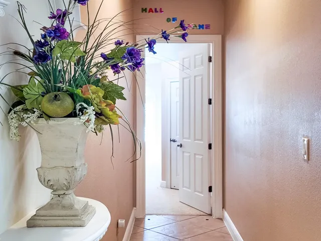 While size certainly matters, it’s the layout and luxurious ambiance that truly define this home. Upon entering the foyer, a medieval-style front door sets the tone—welcoming you into your personal castle. The view of the formal living and dining room, with its custom architectural walls and ceilings, is breathtaking. Straight ahead, expansive French glass doors frame the pool and patio, creating a seamless sense of openness. These doors can be fully opened to extend the living space into the outdoor areas.