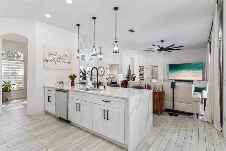 ABSOLUTELY IMMACULATE, Move-In ready 4-Bedroom, 2-Bath, Salt Water POOL HOME in DeBary Golf and Country Club. home. Welcome to this Stunning and Meticulously maintained home, where style, comfort, and function come together flawlessly. New Roof 2022. Interior and Exterior Freshly Painted, including the concrete pool deck. New Interior Doors, Gutters with LeafFilter w/lifetime warranty; all New Samsung appliances; New Porcelain tile Floors throughout; new pool pump and filter; all new tasteful light fixtures inside and out. Upgrades Galore. Walking through the glass double-entry front doors makes a Grand Entrance; you are greeted with tons of natural sunlight from the transom windows throughout, and a full view of the Pool through the spacious living room and sliding glass doors. This home was built for entertaining and family living. The inviting living room is open to the Newly Renovated Eat -in Kitchen and the sunny breakfast nook with views of the pool, and a connected open dining room; it really is the heart of this home. Kitchen includes: Wall Mount Pot Filler, Upper In-Cabinet Lighting, and Gorgeous Quartz Waterfall Kitchen Countertop. The Main Floor Primary Suite has views of the Pool and access. The En Suite Spa Style Bathroom has an Oval Free Standing Soaking Tub, Oversized Seamless Glass Shower, Dual Shower Heads, Rain Shower Head, Quartz Countertops, and a Water Closet. The lush Mature Landscaped property is the home of your dreams with Open Living space and a private screened lanai and pool. The sliding doors open and invite socializing throughout, Indoor/Outdoor Florida living at its Finest. DeBary offers it all, 40ish minutes to have your toes in the ocean, beachside, or less than an hour to the theme parks and attractions of Orlando. Designed to embrace the Florida lifestyle, situated in one of the most sought-after communities, with exclusivity and easy access to nearby amenities, including golf courses, parks, and shopping. This custom home is more than a residence – it’s a lifestyle. Don’t miss your chance to own this stunning property, where every detail reflects the owner’s impeccable taste and commitment to excellence. A paradise community for nature lovers is nestled within the amazing DeBary Plantation. All residents have access to the neighborhood’s community park, which has a playground and basketball court, and bikers will appreciate the easy access to the Spring-to-Spring Trail, a quiet, woodsy biking area for jogging, walking, and cycling. Golf Carts are a welcome form of transportation. This community is walkable and located close to the first-class DeBary Elementary School, which can be accessed by car or golf cart. If you are looking for a friendly and safe community, look no further. The best of Central Florida living can be yours.