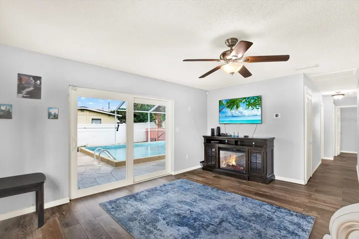 Lakefront beauty in desirable Meadowlawn! This updated pool home offers a 5-year-new roof, hurricane-resistant windows, and an updated master bath (2022). Enjoy a spacious layout with large living and dining areas and a stunning kitchen featuring dark cabinetry and stainless-steel appliances. This property is high and dry and no history of flooding! The outdoor space is incredible—perfect for relaxing or entertaining around the screened saltwater pool overlooking the lake. There is also a secondary lanai that overlooks the lake. Additional upgrades include solar panels with generator and safety bypass switch, Smart thermostat, exterior cameras, retractable awning, RV/boat parking, new energy-efficient pool pump (2023), and hot water heater (2023). Flood insurance approx. $1,521/year. Convenient to shopping, Downtown St. Pete, and easy access to Tampa. This home truly has it all!