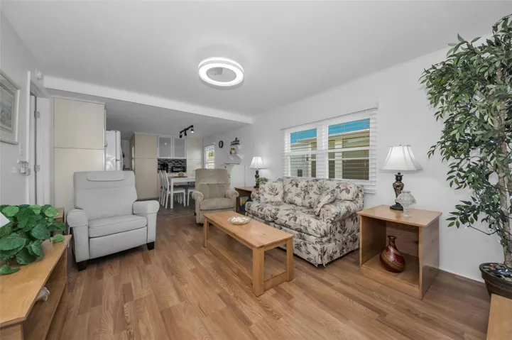 Beautifully updated, fully furnished, and move-in ready, this immaculate home is the perfect choice for anyone seeking a beautifully finished Florida retreat or an ideal vacation getaway. Located in the highly desirable Tarpon Shores 55+ Resident-Owned Community, YOU OWN THE LAND—the $40,000 co-op share is included in the list price and can be financed through the HOA. This home features quality custom-built oak and ash wood furnishings crafted by the owner, newer double-pane thermal windows, wood blinds throughout, easy-care laminate, tile, and vinyl flooring with solid plywood subfloors, and the vapor barrier is approximately 7 years old. The fully equipped kitchen showcases upgraded, high-quality IKEA cabinetry, creating a clean, contemporary style with smart storage and modern appeal. The Extendable dining table easily seats six. The kitchen/dining room opens directly to a cozy and inviting living room. A large 82” doorway leads to the upgraded Florida room. This bright space serves beautifully as a second living area or guest room and includes a modern queen-size sleeper sofa. The Ceilings were rebuilt with new structural joists bringing them up to code and providing added strength, stability, and peace of mind. The interior was meticulously sealed, caulked, and prepped prior to painting, ensuring a clean, high-quality result. The very roomy primary bedroom offers a comfortable queen bed with a high-quality mattress and plenty of closet space. The updated hall bath features a vanity with cabinet, another cabinet for linens, and a step-in shower. Modern Flush Mount ceiling fans with lights in the living room and bedroom. ADDITIONAL UPDATES include HVAC (2016), roof-over is a 30 year roof was new in 2009, and a newer water heater. The seller added additional electrical outlets and a convenient exterior laundry closet right outside your door for added convenience and with a 2-year-old washer and dryer. You will love spending time outdoors—whether you’re relaxing on the shaded porch with its beautiful natural breezes or soaking in the warm Florida sunshine on the open patio. Perfect for morning coffee, evening conversations, or weekend gatherings. A two-car carport and storage shed completes the package. TARPON SHORES is known for its friendly atmosphere, organized activities, and resort-style amenities including a large clubhouse, Large heated pool, pickle ball, bocce ball, shuffleboard, billiards, BBQ area, library, and monthly newsletters. The low monthly fee of $326 covers lawn care, lawn spraying, water, sewer, trash, cable TV, community info channel, and internet. With low taxes and a fantastic location, you will enjoy the World-Famous Tarpon Springs Sponge Docks, beaches, parks, dining, shopping, boating, golf, and more, this beautifully updated home offers an easy, low-maintenance Florida lifestyle in a welcoming resident-owned community.