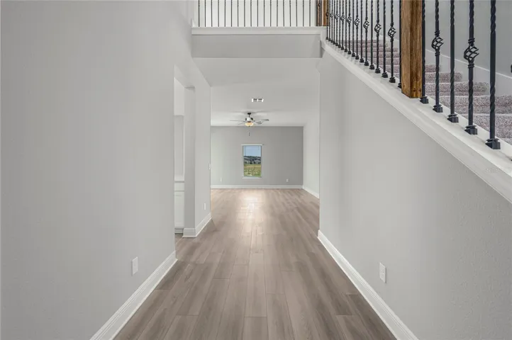 A versatile flex room on the first floor offers endless possibilities, perfect as a home office, playroom, or additional sitting area. Upstairs, a large game room provides the perfect spot for movie nights, relaxing, or family fun. All five bedrooms offer comfortable space to spread out, and the upstairs secondary bathroom includes a dual-sink vanity for added convenience.
