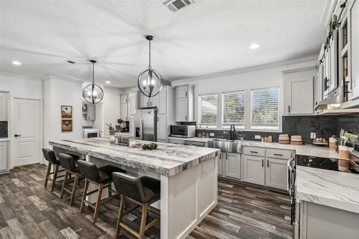 Through the electric gated entrance, a private drive winds back to a beautifully finished 4 bedroom 3.5 bathroom home with 2,254 square feet of living space. Inside, the open concept layout lives large. The main living room flows seamlessly into a showstopper kitchen featuring an oversized island with barstool seating, stainless steel appliances, abundant cabinetry, and a generous dining area that is perfect for family gatherings and entertaining. Just off the kitchen, an additional family room creates a second comfortable hangout space and keeps the heart of the home connected.
