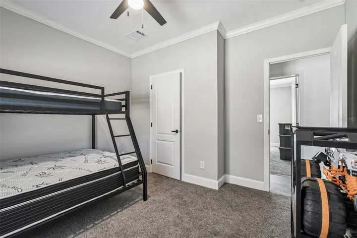 The owner’s suite feels like a luxury retreat with a spa inspired bathroom that offers a freestanding soaking tub, separate walk in shower, dual sinks, and beautiful finishes. The massive walk in closet with a center island delivers the kind of storage that is hard to find. The second bedroom features its own private ensuite bathroom, ideal for guests, multigenerational living, or an older child who wants extra privacy. The remaining bedrooms are located nearby with a full guest bathroom conveniently positioned to serve both bedrooms and the main living areas. A half bathroom off the common space adds everyday functionality.