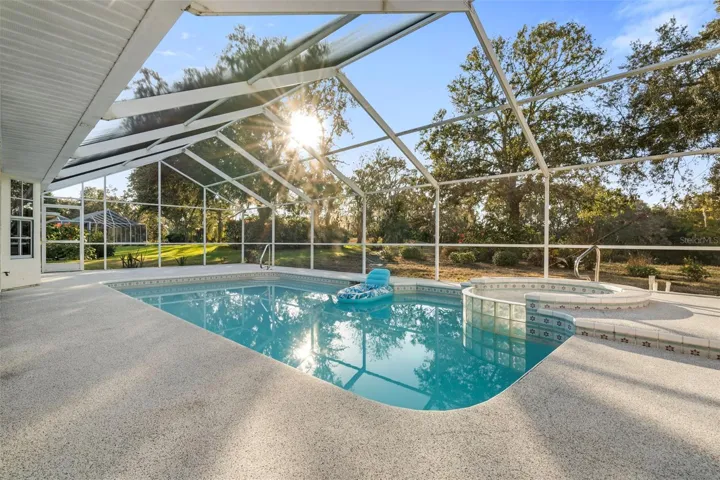 Discover the perfect blend of comfort, space, and Florida living in this beautifully maintained home located in the highly desirable Links at Seven Hills community. From the moment you step inside, you’ll feel the openness of the high ceilings, the flow of the expansive living areas, and the abundance of natural light that makes this home truly special. This split-floor-plan layout offers both function and privacy. As you enter, you’ll find a dedicated dining room to the left and a spacious living room to the right, with your eyes immediately drawn to the sparkling crystal-blue pool just beyond the sliders. This tranquil outdoor oasis overlooks the rolling hills of the previous golf course, guaranteeing no rear neighbors and providing peaceful views of the walking trail just steps behind the home—perfect for evening strolls. The kitchen features generous cabinet space, a breakfast bar, and a charming nook with a bay window overlooking the pool and backyard. A convenient door from the nook leads directly out to the pool area. Off the kitchen, a hallway brings you to two well-sized guest bedrooms—both with ceiling fans and carpet—with one bedroom offering a built-in desk and shelving. The large guest bathroom includes dual sinks, a tub/shower combination, and its own access to the patio for added convenience. You’ll also appreciate the indoor laundry room, complete with washer, dryer, utility sink, and extra cabinetry. The primary suite is truly impressive—stretching approximately 27 feet in length with soaring ceilings, two closets, and sliding doors that open to the pool area. The ensuite bathroom offers a soaking tub, a walk-in shower, and plenty of space to unwind. Outside, the oversized garage features a finished floor, a designated workshop area, and additional built-in cabinetry for storage. **The sellers are willing to install a brand-new roof prior to closing, giving you peace of mind for years to come.** Located near the YMCA, shoppes, restaurants and medical providers, you’re perfectly situated in Hernando County, close to everything you need. This home is ready for its next chapter, and we hope the next owner is you! Schedule your showing today and experience all that 1091 Tournament Drive has to offer!