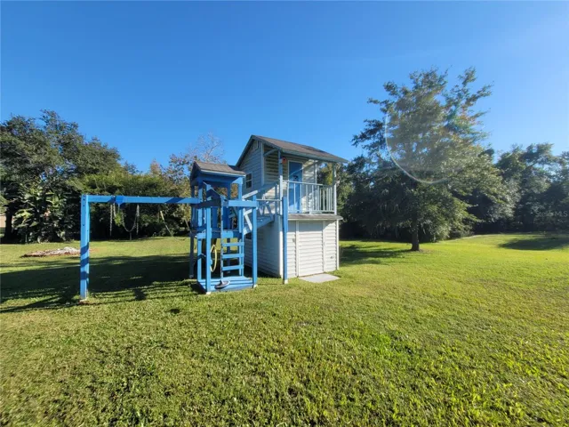 Beyond the enclosure, the expansive backyard offers **unlimited possibilities**. Enjoy an onsite **playhouse**, an additional **storage shed**, and a cozy **fire pit**—perfect for unwinding and watching breathtaking Florida sunsets on your own land.