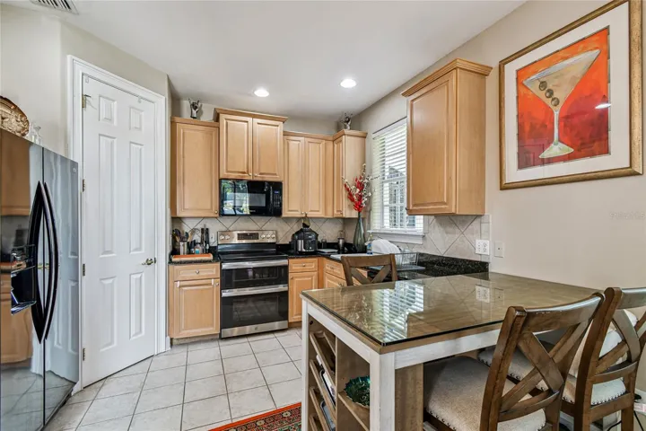 Step inside to soaring 19’ ceilings, oversized windows, and an open-concept kitchen/living/dining area flooded with natural light. The chef’s kitchen features real wood cabinetry, granite countertops, stainless appliances, and a cozy eat-in nook that leads to a private screened lanai — your peaceful retreat.