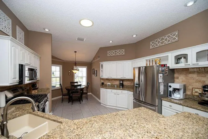 Spectacular updated 3/2 stretched Camellia model in the Village of Polo Ridge. – Bond Paid – Open floor plan – Fully enclosed lanai with heat and air conditioning – Built in dry bar with 2 new wine coolers – 4 solar tubes, new screens throughout, new plantation shutters – Whole house water filtration system, 2 solar powered roof fans – Smart HVAC thermostat, smart irrigation system – Inside laundry with washer and dryer included – New HVAC in 2015; roof, water heater and all appliances replaced in 2019 – Large primary bedroom with dual walk in closets, En suite with dual vanities and new walk-in shower, linen closet – Pocket doors to guest wing with 2 bedrooms and full bath – Front bedroom has Murphy bed with built in closet, perfect for office or Den – Eat in kitchen with granite counters, stainless appliances and gas stove included – Close to Lake Sumter and Spanish Springs Town Squares, Savannah and Saddlebrook Recreation Centers – A short golf cart ride to shopping and restaurants